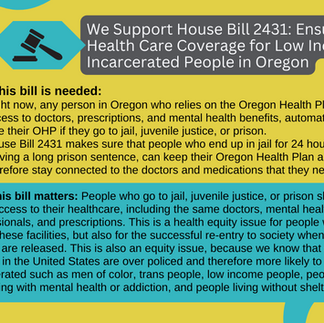 We Support House Bill 2431: Ensuring Health Care Coverage for Low Income Incarcerated People in Oregon